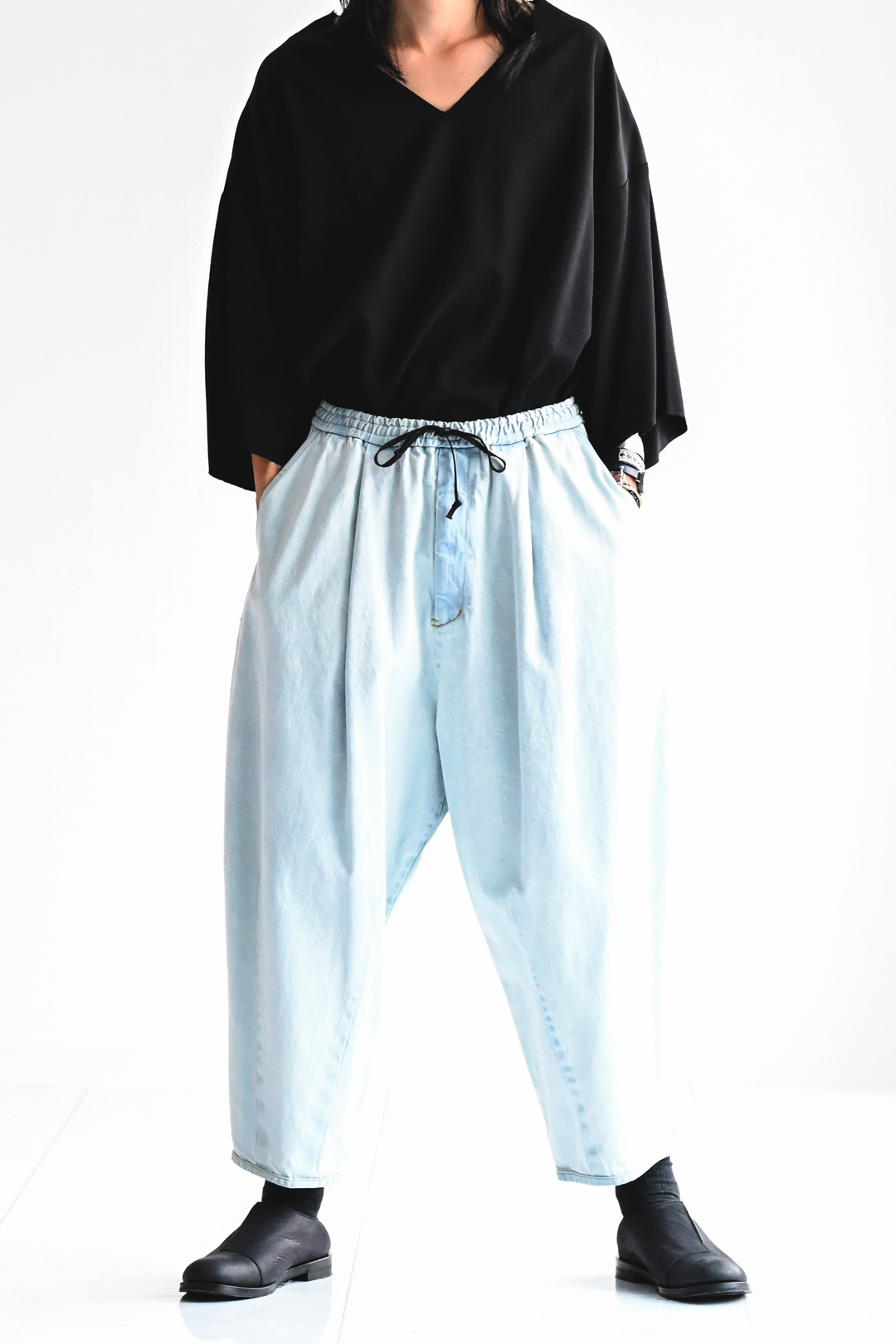 BISHOOL 12oz Bleach Denim Cocoon pants