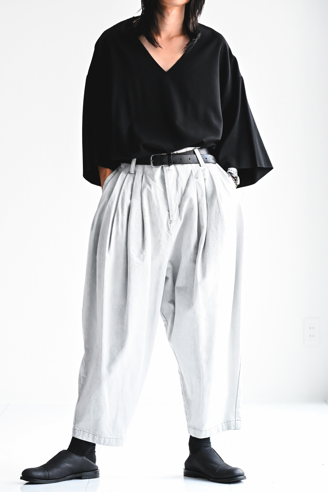 BISHOOL Bleach Black Denim 10 Tuck Pants