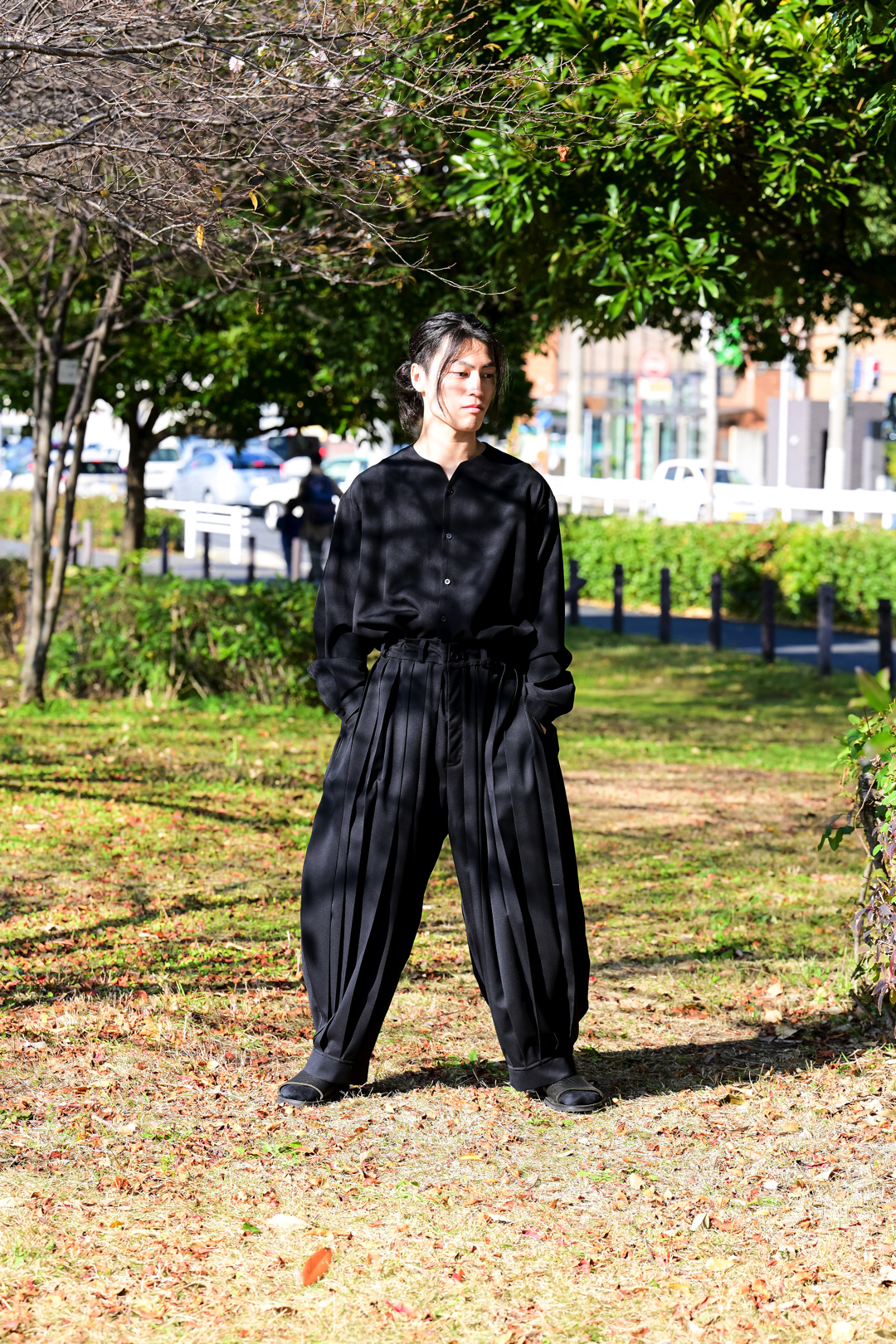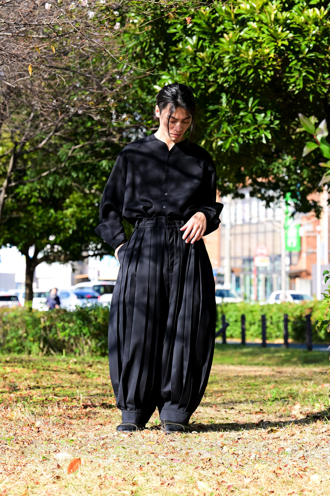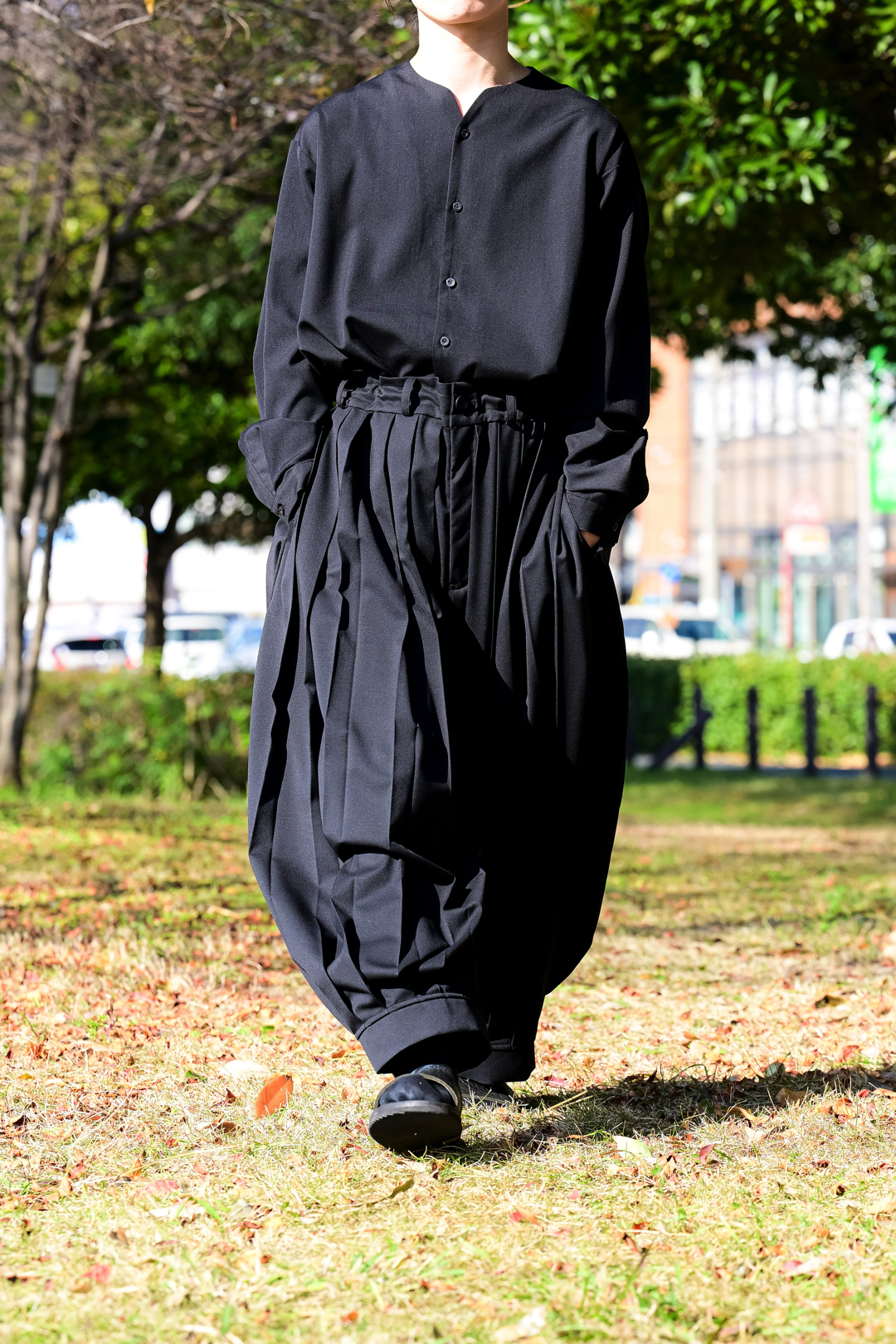 Wool Gabardine 01 Lapel Oversized Shirt black