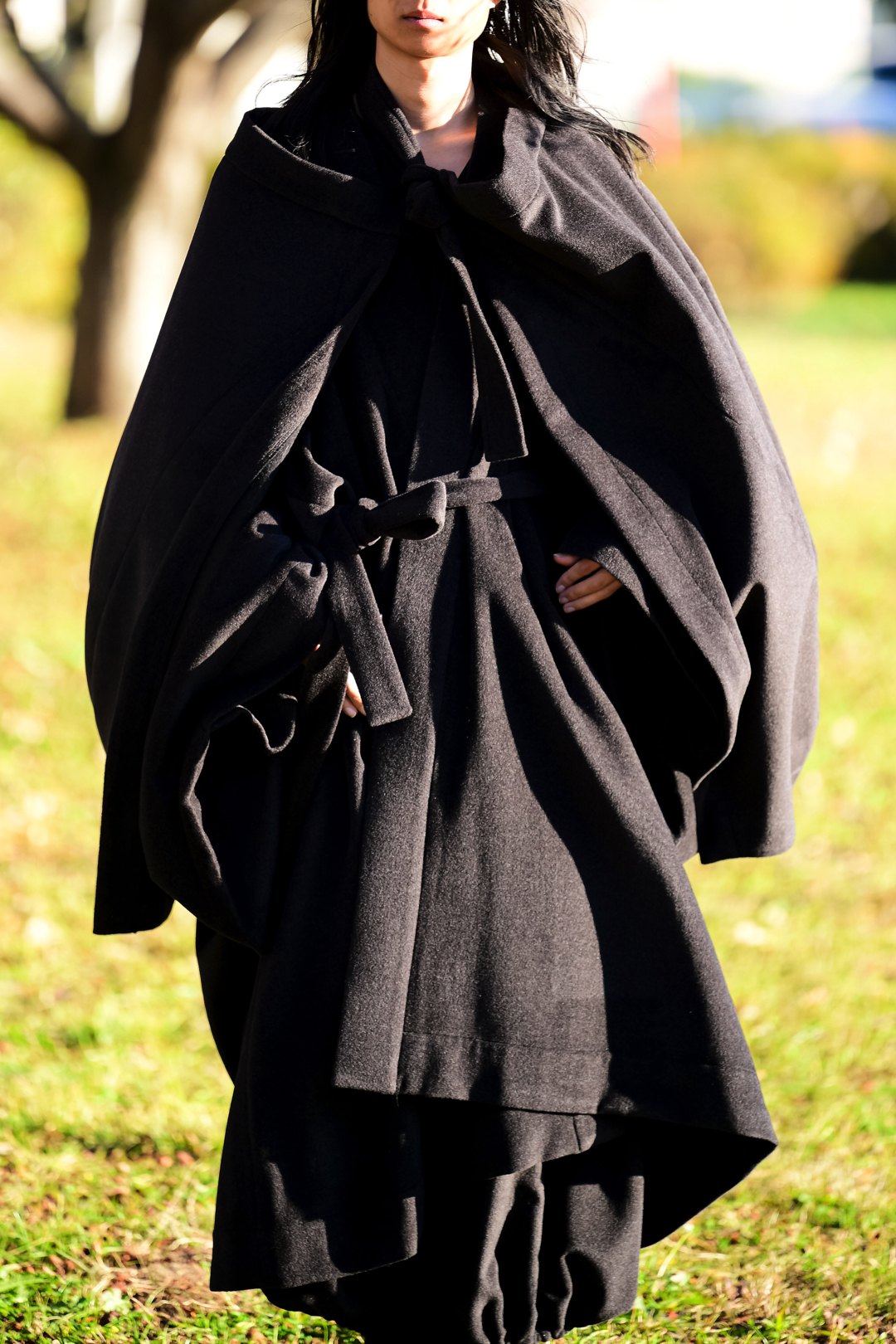 Round Drape Wrap YUKATA Cloth Angora Wool ash black