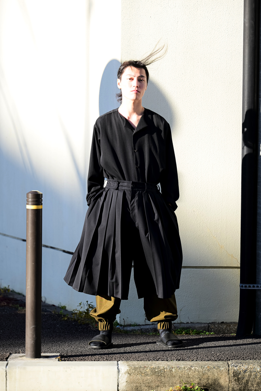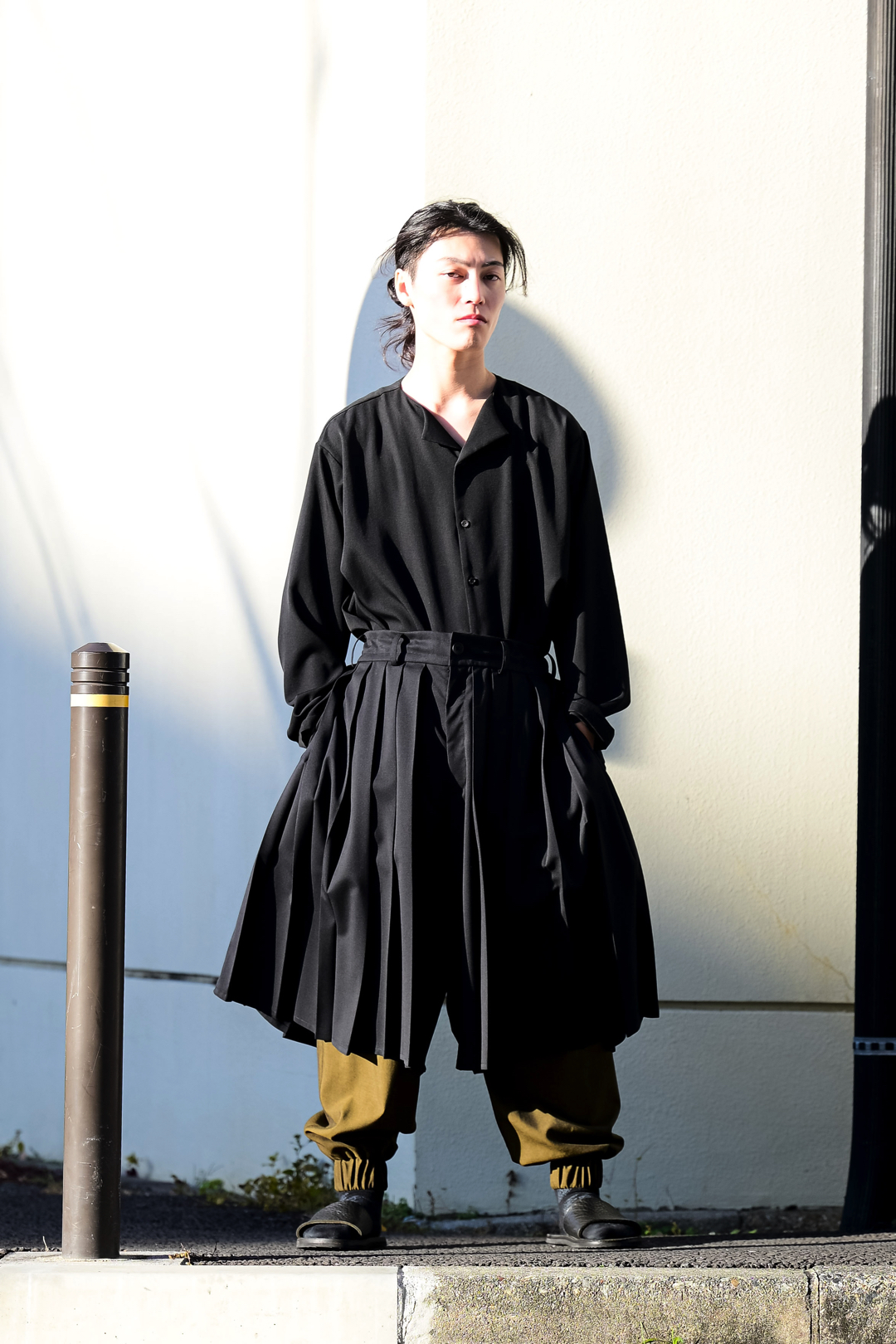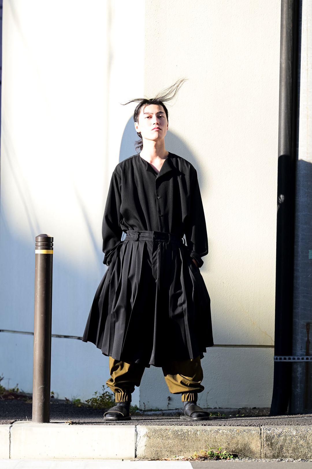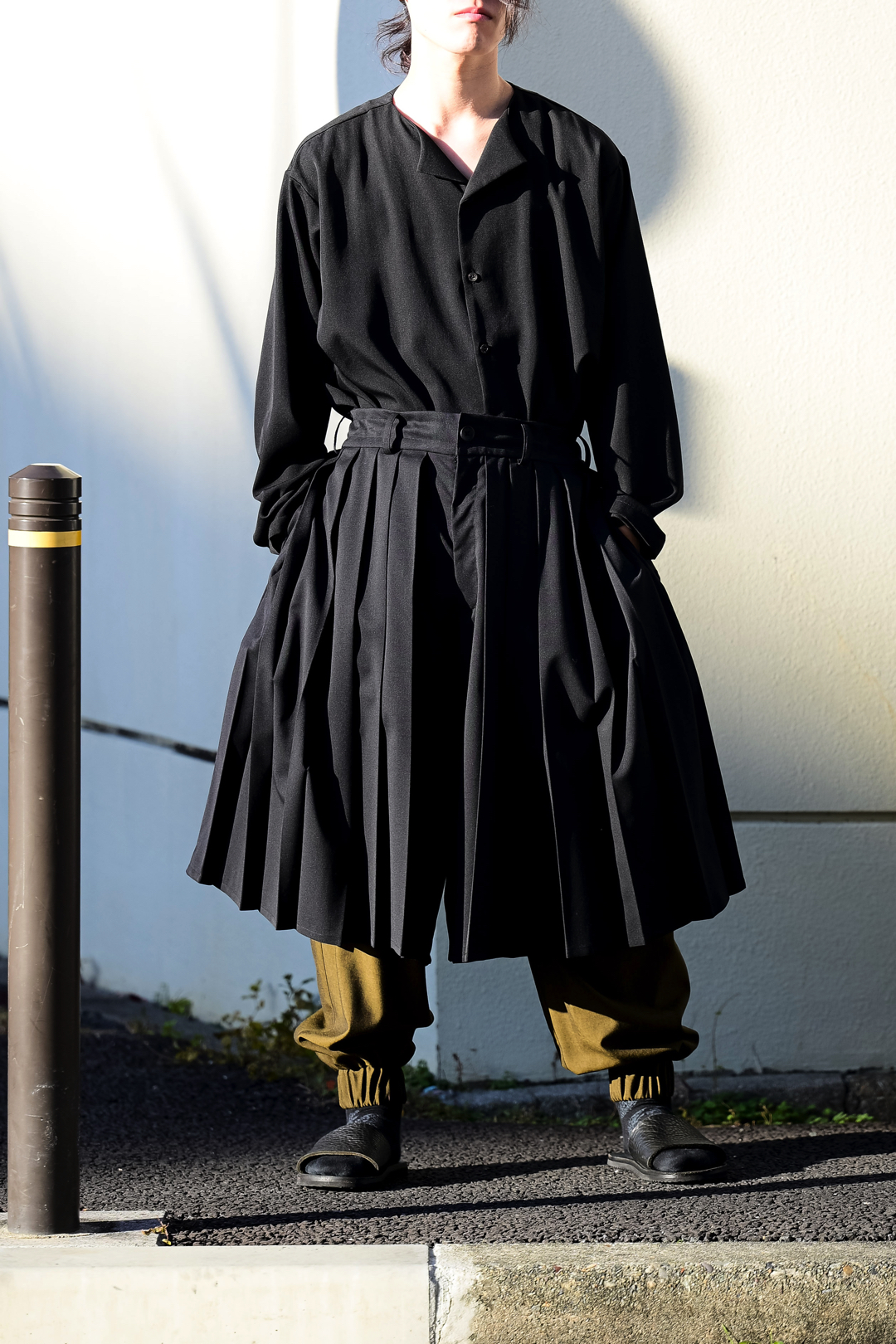Wool Gabardine Drip Lapel Big Shirt black