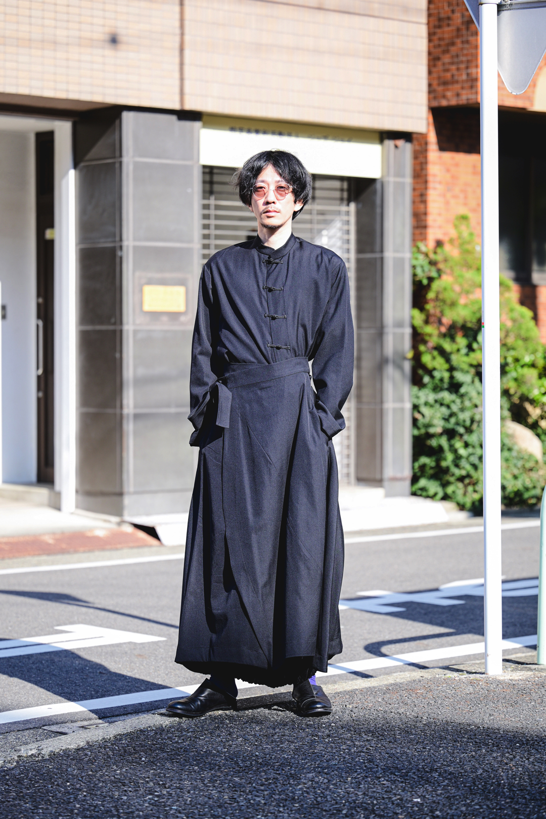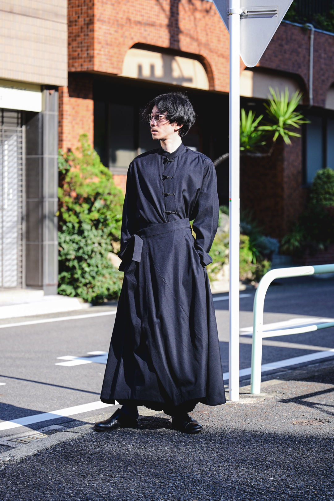 Wool Gabardine China Big Shirt black