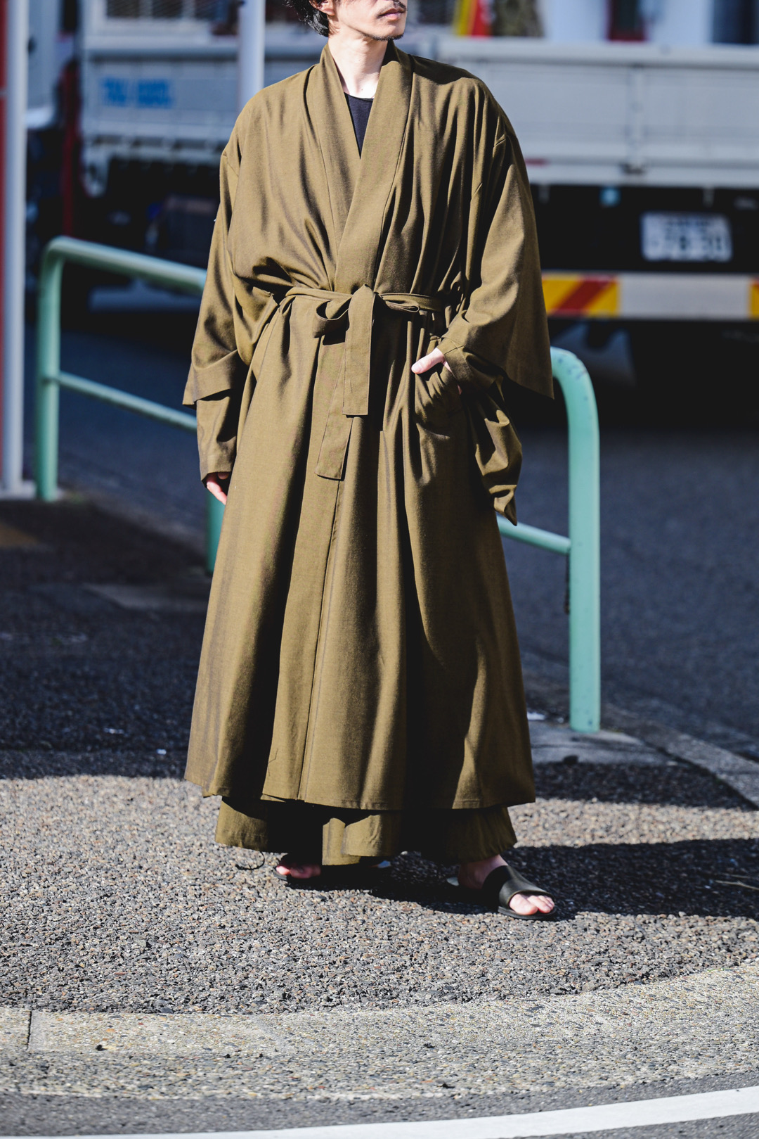 Wool Gabardine YUKATA Coat mustard